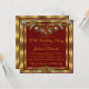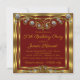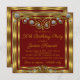 Cartes d'invitation à une fête d'anniversaire élégante pour femme en rouge et or avec de beaux tourbillons de diamants dorés sur un fond rouge et or élégant. Cette invitation de fête d'anniversaire en rouge et or est facilement personnalisable avec le texte de votre choix, et vous pouvez changer la couleur de fond.