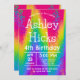 Invitation Fête d'anniversaire enfant arc-en-ciel tie-dye gro