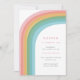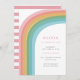 Une invitation à une fête d'anniversaire pour enfant pour une fête sur le thème de l'arc-en-ciel.
