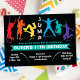 Une invitation d'anniversaire amusante pour enfants - GARÇONS ou FILLES dans un centre de trampoline, une maison rebondissante, une fête dans un château gonflable. Avec des enfants qui sautent et une bannière pour entrer le nom et l'âge de votre enfant.