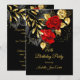 Invitation Fête d'anniversaire Exotic Red Rose Black Floral G