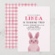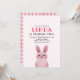 Invitation fête d'anniversaire fille avec un lapin rose portant des lunettes roses. VOUS POUVEZ SUPPRIMER LES LUNETTES ! Dos avec motif à carreaux.
