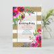Invitation Fête d'anniversaire florale audacieuse rayures or