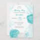 fleurs romantiques turquoises et blanches sur une belle invitation à la fête d'anniversaire cadre géométrique. Les détails de la parties scintillant sont simulés.