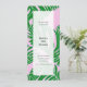 Conception de feuilles de palmier avec un schéma de couleurs rose et vert. Invitation générique pour célébrer n'importe quelle occasion, y compris un anniversaire, un mariage, une remise de diplôme, un événement professionnel, d'entreprise, un anniversaire de mariage, une ouverture, une baby shower, une soirée entre filles, une journée portes ouvertes, une pendaison de crémaillère, un dîner, etc.