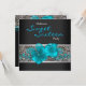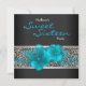Invitation à une fête d'anniversaire léopard bleu sarcelle noir pour les seize ans.