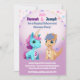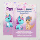 Invitez tous vos invités à célébrer une double fête d'anniversaire avec cette charmante invitation de fête licorne et dinosaure. Ajoutez les noms et âges de vos enfants à cette équipe de licorne et de dinosaure illustrée et dessinée à la main pour personnaliser votre invitation de fête et créer une fête magique et unique que vos enfants vont sûrement adorer !
