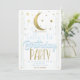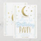 Invitation Fête d'anniversaire lune étoiles or bleu clair cap