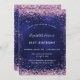 Une invitation moderne, élégante et glamour pour une fête d'anniversaire de 21e (ou tout âge). Un arrière - plan bleu marine, décoré avec de la poussière de parties scintillant en faux rose. La couleur bleue est inégale. Personnalisez et ajoutez votre nom et les détails de votre fête.