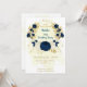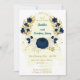 Fleurs bleu marine romantique & blanc avec or feuille botanique d'anniversaire invitation Les détails de la parties scintillant sont simulés.