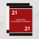 Invitations de fête du 21e anniversaire masculin. Convient à tous les anniversaires et événements d'âge. Style simple avec des couleurs noir, blanc et rouge très clair. Rsvp est disponible sur demande dans le même style.