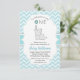 Invitation à une fête d'anniversaire moderne mignonne éléphant bleu blanc 1 an | Invitation premier anniversaire garçon - Motif Chevron