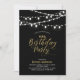 Célébrez un jour spécial avec cette invitation chic et dorée pour anniversaire ! Ce design présente des guirlandes lumineuses et une typographie dorée élégante sur fond noir. Vous pouvez personnaliser le texte pour n'importe quel âge ou étape importante d'anniversaire. D'autres invitations et fournitures de fête d'anniversaire pour adultes sont disponibles dans ma boutique BaraBomDesign.