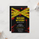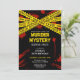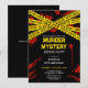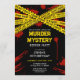 Invitation à une soirée mystère de meurtre avec un design moderne avec rubans de scène de crime de police jaune et taches de sang. Pour une fête d'anniversaire parfaite pour la police, une soirée de jeu de détective ou un événement d'escape room sur le thème du crime. Produits personnalisables pour une célébration mémorable.