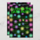 Invitation à une fête lumineuse dans le noir avec lumière noire multicolore et enseigne néon verte lumineuse dans le noir pour une fête d'anniversaire. Cette invitation de fête lumineuse amusante est facilement personnalisable pour votre événement en ajoutant simplement vos détails dans le style de police et la couleur de votre choix.