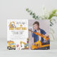 Célébrez le meilleur anniversaire de chantier de votre enfant avec cette invitation de fête unique ! Avec un fond blanc, une photo, un panneau stop, un camion à benne, une pelleteuse, des feux de circulation et un cône avec des vis éparpillées, cette invitation crée une atmosphère unique pour l'anniversaire de votre enfant. Personnalisez-la davantage avec les styles, tailles et couleurs de police en cliquant sur le lien "personnaliser davantage" après la personnalisation. Préparez-vous à transformer votre maison en un chantier de construction animé - que les festivités d'anniversaire commencent !