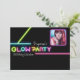 Invitation fête d'anniversaire photo néon GLOW PARTY. Personnalisez avec votre photo et texte.