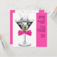 Invitation de fête d'anniversaire martini pour femme. Cette invitation de fête d'anniversaire martini et nœud papillon rose chaud fonctionne très bien pour une fête d'anniversaire de femme, une retraite, un événement noir cravate d'entreprise, une fête martini ou une soirée de filles. Ajoutez vos détails au recto et/ou verso de cette invitation élégante de fête d'anniversaire martini et nœud papillon rose en ajoutant les détails de votre événement, le style de police, la taille et la couleur de la police, et le libellé.