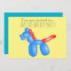 Une invitation d'anniversaire mignonne et entièrement personnalisable qui convient à un jeune enfant, bébé, bébé ou tout-petit. Ce design mignon a une image d'un cheval animal ballon et la couleur arrière - plan est personnalisable.