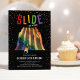 Lorsqu'il s'agit de se préparer pour une fête d'anniversaire d'enfant, les invitations personnalisées sont le moyen idéal pour donner le ton et informer les invités du type d'événement à attendre. Avec un fond noir audacieux et moderne et des confettis colorés, ces invitations audacieuses présentent des images vibrantes d'enfants jouant dans un parc de glissade intérieur avec une inscription de célébration.