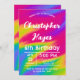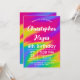 Faites sensation avec cette invitation de fête verticale lumineuse et joyeuse ! Avec un fond arc-en-ciel vibrant et des confettis ludiques, c'est parfait pour un anniversaire d'enfant animé ou toute célébration joyeuse.