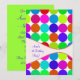Carton d'invitation personnalisé pour fête d'anniversaire de fille à pois néon rouge vert bleu jaune rose violet vif.