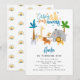 En tant que parents, créer une journée spéciale pour nos enfants est l'une des plus grandes joies que nous puissions vivre, et quel meilleur moyen de le faire que d'organiser une fête d'anniversaire sur le thème des animaux qui leur permet de se sentir comme le roi de la jungle ! Notre modèle moderne de carte d'invitation d'anniversaire offre la représentation visuelle parfaite de cela, avec des images de dessins animés de lions, de tigres, d'éléphants, de zèbres, de girafes et de perroquets qui mettront vos amis en joie à l'approche de l'événement.