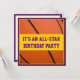 Les invitations sportives de fête d'anniversaire comportent une fin vers le haut de photographie d'un basket-ball. La photo de basket-ball est équilibrée dans pourpre et les couleurs jaunes d'équipe de basket et il y a une bande jaune à travers le centre. Il y a texte dans la police pourpre qui peut être customisée pour adapter à vos besoins. Le verso de l'invitation a le même équilibre pourpre et jaune avec un secteur central blanc solide. Là texte entièrement personnalisable d'IS-IS dans la police pourpre. Perfectionnez pour l'athlète, les sports ou la fête d'anniversaire orientée de basket-ball.