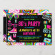 Invitation Fête d'anniversaire Rétro Néon 80 Vintage