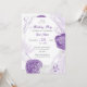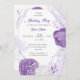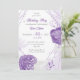 Invitation de fête d'anniversaire romantique avec des fleurs blanches et violettes sur un cadre géométrique cercles joli. Les détails de la parties scintillant sont simulés. POUR PLUS DE PRODUITS CORRESPONDANTS contactez-moi.