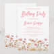 Une simple invitation à la fête d'anniversaire à fleurs roses pour une fête d'anniversaire amusante.