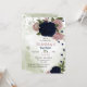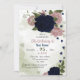 romantique rose et bleu marine fleurs et vert feuille botanique d'anniversaire invitation