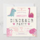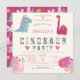 Invitation Fête d'anniversaire rose moderne dinosaure mignon