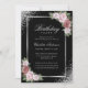 Elégante invitation à fêter des fleurs roses et vertes en noir et argenté encadrant les détails de l'événement dans un cadre argenté orné de confettis argentés. Invitation à l'anniversaire floral floral. Invitation d'anniversaire rose et argent. Invitation d'anniversaire blush et argent. Invitation d'anniversaire noir et argent. Personnalisez facilement ce modèle à n'importe quelle fête d'anniversaire.