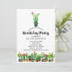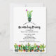 Cartes d'invitation pour une fête d'anniversaire rustique sud-ouest avec fleurs de cactus.