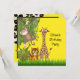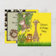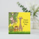 Cartes d'invitation pour une fête d'anniversaire sur le thème de la jungle avec un singe, un tigre, une girafe et un lion mignons. Ajoutez vos détails au recto et/ou verso en ajoutant simplement vos informations d'événement, le style de police, la taille et la couleur de la police, ainsi que le libellé. Certains graphiques ©delightful-doodles.