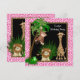 Cartes d'invitation à une fête d'anniversaire sur le thème de la jungle rose avec un singe, une girafe, une grenouille et un lion mignons. Cette invitation adorable pour une fête d'anniversaire sur le thème de la jungle pour filles est facilement personnalisable pour votre événement en ajoutant vos détails d'événement, style de police, taille et couleur de police, et libellé. Certains graphiques ©delightful-doodles.