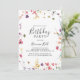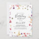 Cette invitation classique aux fêtes d'anniversaire aux fleurs sauvages et colorées est parfaite pour une fête d'anniversaire rustique. Le design présente des fleurs sauvages jaunes, violettes et blanches avec du feuillage dans un arrière - plan rose et vert aquarelle.
