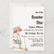 Cette invitation de fête d'anniversaire sur le thème du scooter moderne et mignon est le choix parfait pour votre petit garçon star du scooter. Elle présente une conception d'illustration à l'aquarelle dessinée et peinte à la main. Les éléments comprennent un mignon racoon marron et vert sur fond de confettis blancs et dorés. La couleur du fond et du texte est définie, mais peut être modifiée en cliquant sur le bouton "personnaliser".