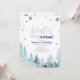 Célébrez votre jour spécial avec cette invitation moderne pour un 1er anniversaire d'hiver ! Ce design présente une scène hivernale avec des flocons de neige pailletés argentés, des arbres à l'aquarelle et une typographie élégante " Winter ONEderland " dans un thème de couleurs bleu foncé et argent. Invitation parfaite pour une fête de premier anniversaire en hiver pour garçons.