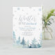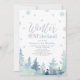 Célébrez votre jour spécial avec cette invitation moderne pour un 1er anniversaire d'hiver ! Ce design présente une scène hivernale avec des flocons de neige argentés pailletés, des arbres à l'aquarelle et une typographie élégante " Winter ONEderland " dans un thème de couleurs bleu bébé et argent. Invitation parfaite pour une fête de premier anniversaire d'hiver pour garçons.