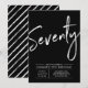Célébrez votre jour spécial avec cette invitation d'anniversaire 70 ans simple et élégante. Ce design présente un "Soixante-dix" écriture pinceau avec une mise en page épurée en combinaison de couleurs noir et blanc. Plus de designs disponibles dans ma boutique BaraBomDesign.