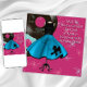 Cartes d'invitation pour une soirée dansante sur des disques vinyles 45 tours, rock 'n' roll, saut de grenouille, style années 50, rose et bleu sarcelle. Cette invitation de fête rétro amusante et nostalgique des années 1950 est facile à personnaliser pour votre fête ou événement en ajoutant vos détails d'événement, style de police, taille et couleur de police, et libellé. Veuillez noter que toutes les conceptions de cartes et d'invitations que vous trouverez sur Zazzle sont des graphiques imprimés sans véritables bijoux, rubans, reliefs, gaufrages ou pièces ou éléments ajoutés. Certaines images Simply Sumara.