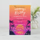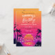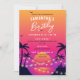 Cette conception vibrante d'invitation d'anniversaire tropicale capture l'essence d'une célébration au bord de la plage avec un dégradé de coucher de soleil époustouflant aux teintes orange, rose et violette. Les silhouettes de palmiers, les oiseaux en vol et les guirlandes lumineuses créent une atmosphère festive et décontractée, tandis que la typographie moderne et audacieuse met en évidence tous les détails de l'événement. Parfait pour une soirée d'été, une fête sur la plage ou une célébration de destination, ce design dégage une ambiance de plaisir, de chaleur et de charme côtier, ce qui le rend idéal pour quiconque souhaite célébrer dans un cadre tropical décontracté mais élégant. Disponible sous forme de cartes imprimées et/ou de téléchargement numérique instantané.