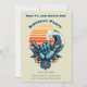 Préparez-vous à surfer sur la vague de l'été avec cette invitation à une fête d'anniversaire ! Avec son coucher de soleil rétro, son geste iconique de surf hawaïen et sa grosse vague, cette invitation dégage les vibrations décontractées d'un paradis tropical.