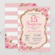 Invitation de fête d'anniversaire surprise pour 15 ans avec des pivoines roses florales pour fille. Paillettes dorées. Fleurs florales aquarelles roses chic. Rayures roses et blanches. 13e 15e 16e 18e 20e 21e 30e 40e 50e 60e 70e 80e 90e 100e, tous âges. Numérique imprimable. Pour une personnalisation supplémentaire, veuillez cliquer sur le bouton "Personnaliser" et utiliser notre outil de conception pour modifier ce modèle.