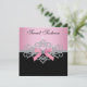 Invitation élégante de fête d'anniversaire Sweet 16 avec diamants blancs, nœud rose et thème rose et noir. Cette invitation de fête d'anniversaire rose et noir est facilement personnalisable pour votre événement en ajoutant vos détails d'événement, style de police, taille et couleur de police, et libellé.