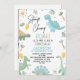 Invitation pour le 1er anniversaire thème dinosaure photo bleu vert mignon