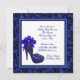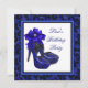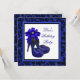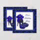 Magnifique modèle d'invitation pour une fête d'anniversaire en forme de chaussure à talon haut léopard bleu royal et argent. Cette invitation élégante pour un anniversaire bleu royal et argent est facilement personnalisable pour votre événement en choisissant simplement le bouton "Personnalisez-le !" pour commencer à ajouter vos détails d'événement, style de police, taille et couleur de police, et libellé. Veuillez noter que tous les autocollants, cartes et modèles d'invitation que vous trouverez sur Zazzle sont des graphiques imprimés sans véritables bijoux, rubans, reliefs, gaufrures ou pièces ajoutées.