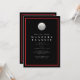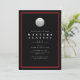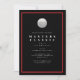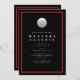 Invitation de golf élégante avec un fond noir, un cadre rouge et une balle de golf.
